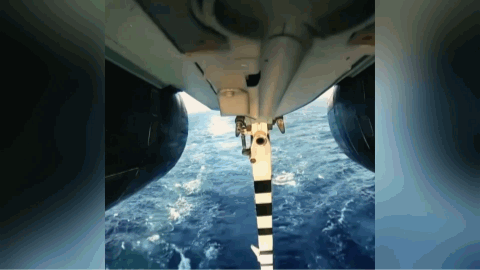 因?yàn)樵诿C4蠛I?,百米高空的艦載機(jī)望向航母,就像一片漂在水中的 “樹(shù)葉”。