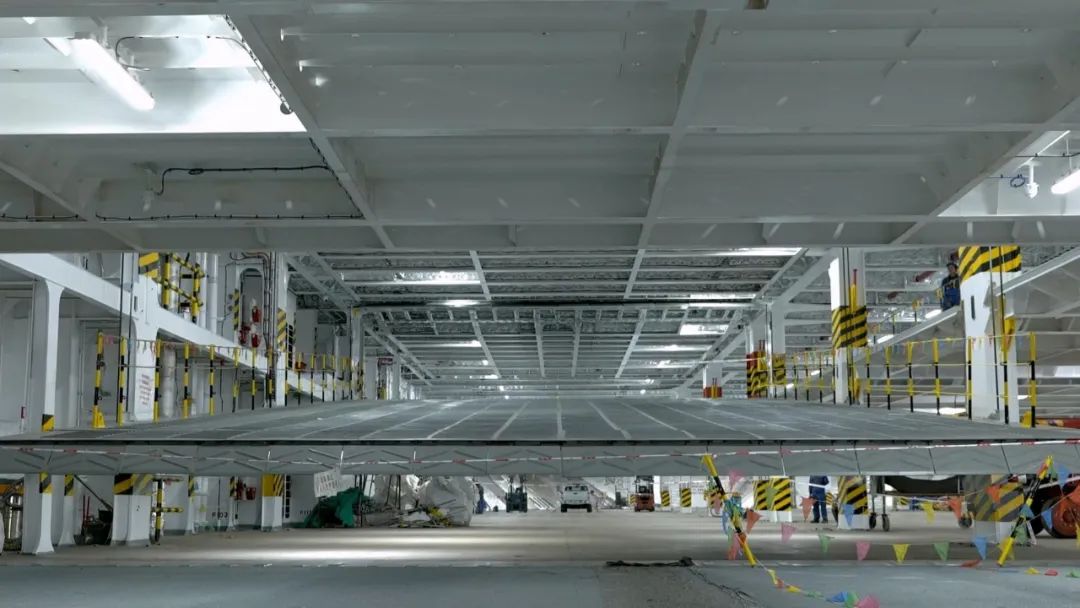 中國船舶廣船國際建造在近年來,致力研發(fā)、攻堅克難,2024年成功完工交付了12艘雙燃料汽車運輸船。這種大型滾輪船總長約200米,型寬38米,擁有12層甲板, 能裝載7000輛汽車,體型可以稱得上是“海上霸王”。但它的特點可不僅僅是能“裝”,還有適配運輸新能源汽車的獨特巧思。