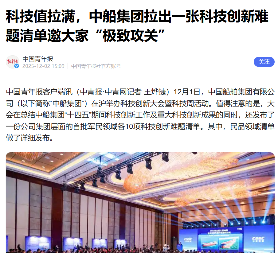 12月1-5日,中國船舶集團(tuán)有限公司在上海舉辦了科技創(chuàng)新大會(huì)暨科技周活動(dòng)。