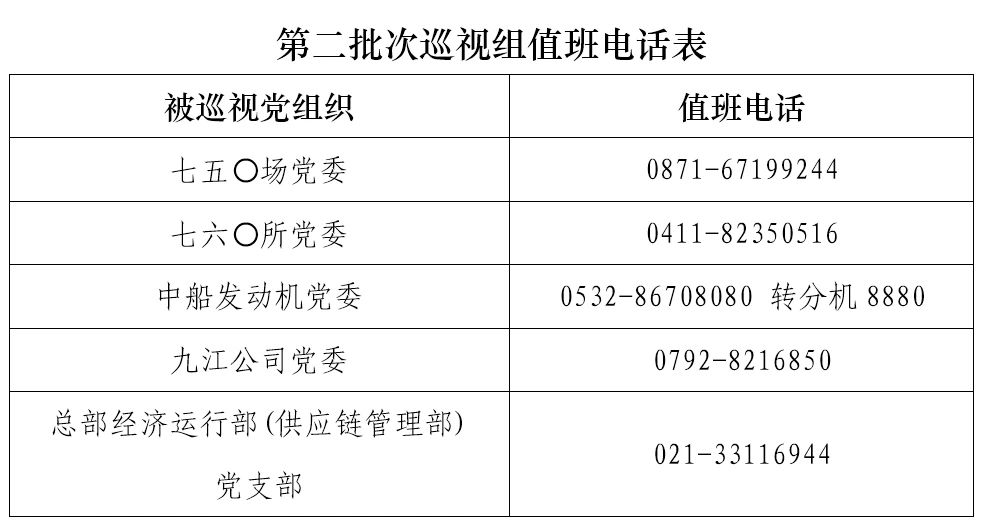 巡視期間,集團公司黨組巡視組設(shè)置值班電話和聯(lián)系信箱,主要受理反映被巡視黨組織領(lǐng)導班子及其成員、下一級黨組織領(lǐng)導班子主要負責人和重點崗位領(lǐng)導干部問題的來信、來電、來訪,重點關(guān)注違反政治紀律、組織紀律、廉潔紀律、群眾紀律、工作紀律、生活紀律以及巡視整改等方面問題反映。第二批次巡視受理信訪截止時間為8月18日。