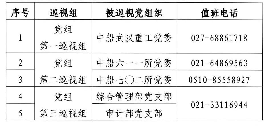 按照中國(guó)船舶集團(tuán)有限公司黨組對(duì)巡視工作統(tǒng)一部署,近日,2026年度第一批次巡視組完成全面進(jìn)駐。此批巡視分3個(gè)巡視組,分別對(duì)中船武漢重工黨委、中船六一一所黨委、中船七〇二所黨委等黨組織開展常規(guī)巡視,對(duì)總部綜合管理部黨支部、審計(jì)部黨支部開展“四型”總部建設(shè)專項(xiàng)巡視。