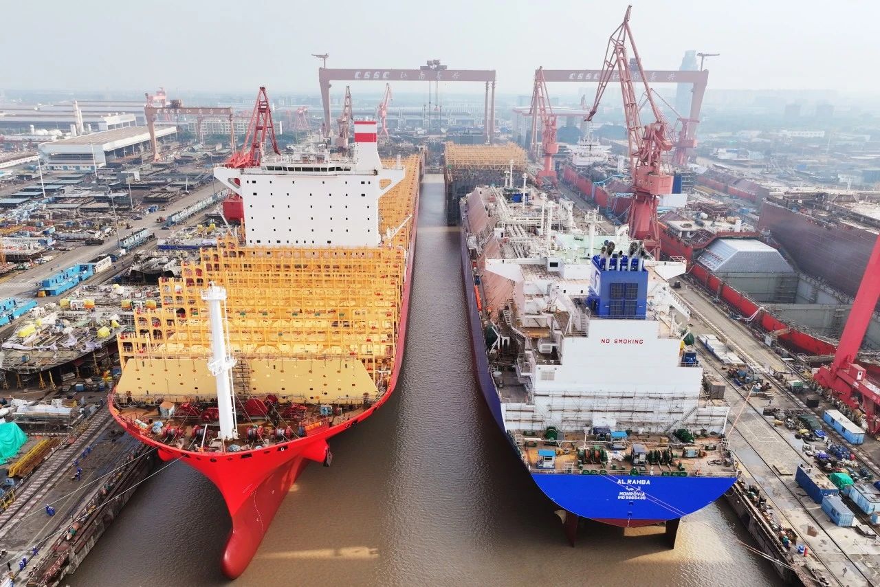 10月8日,中國船舶集團旗下江南造船3號船塢完成了年度第五批次出塢,2艘整船出塢、2艘半船同步起浮。