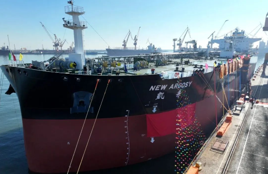 12月9日,中國船舶集團(tuán)所屬中國重工大連造船為招商輪船建造的11.5萬噸原油船“凱舟”號命名交付。這是大連造船山船重工今年交付的第15艘船舶,標(biāo)志著山船重工超額完成全年交船目標(biāo)任務(wù)。