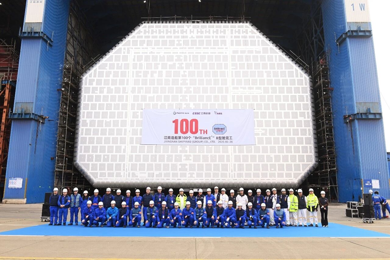 1月28日,中國(guó)船舶集團(tuán)有限公司旗下江南造船在10號(hào)平臺(tái)絕緣安裝場(chǎng)地舉行第100個(gè)B型艙完工儀式。自2021年首個(gè)B型艙完工至今,歷經(jīng)1700多個(gè)日夜的不懈奮斗,江南造船在B型艙圍護(hù)系統(tǒng)與超大型乙烷運(yùn)輸船(VLEC)領(lǐng)域?qū)崿F(xiàn)跨越式發(fā)展,成功打破了國(guó)外對(duì)低溫圍護(hù)系統(tǒng)的技術(shù)壟斷。