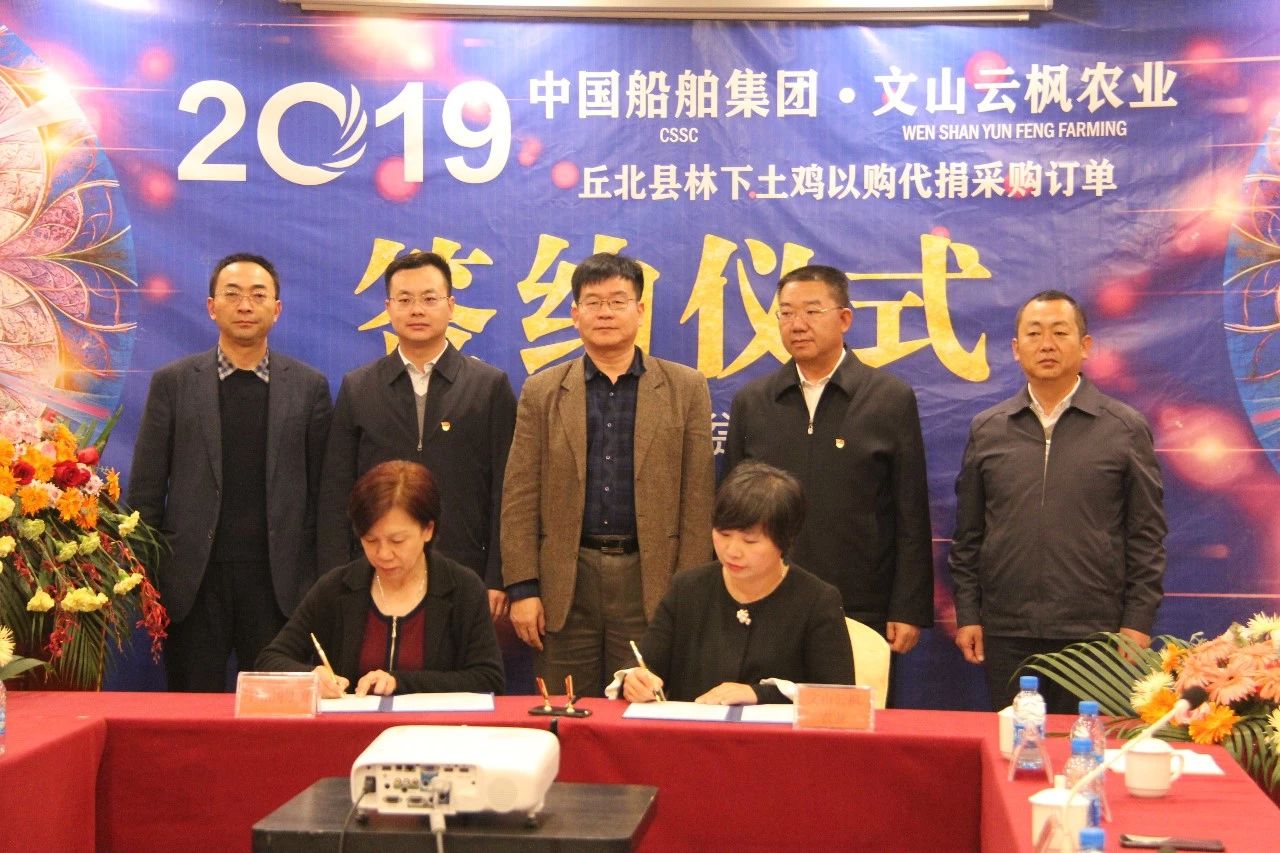 ????12月22日,中國(guó)船舶集團(tuán)有限公司定點(diǎn)扶貧縣——云南省文山州丘北縣舉行中國(guó)船舶集團(tuán)—文山云楓農(nóng)業(yè)丘北縣林下養(yǎng)雞以購(gòu)代捐采購(gòu)訂單簽約儀式。中國(guó)船舶集團(tuán)所屬中船物貿(mào)公司與云南文山云楓農(nóng)業(yè)簽訂了價(jià)值約1000余萬(wàn)元的10萬(wàn)只土雞“以購(gòu)代捐”采購(gòu)訂單。中國(guó)船舶集團(tuán)在丘北縣實(shí)施的10萬(wàn)只土雞“以購(gòu)代捐”項(xiàng)目,歷時(shí)7個(gè)月,進(jìn)入全面收尾階段。